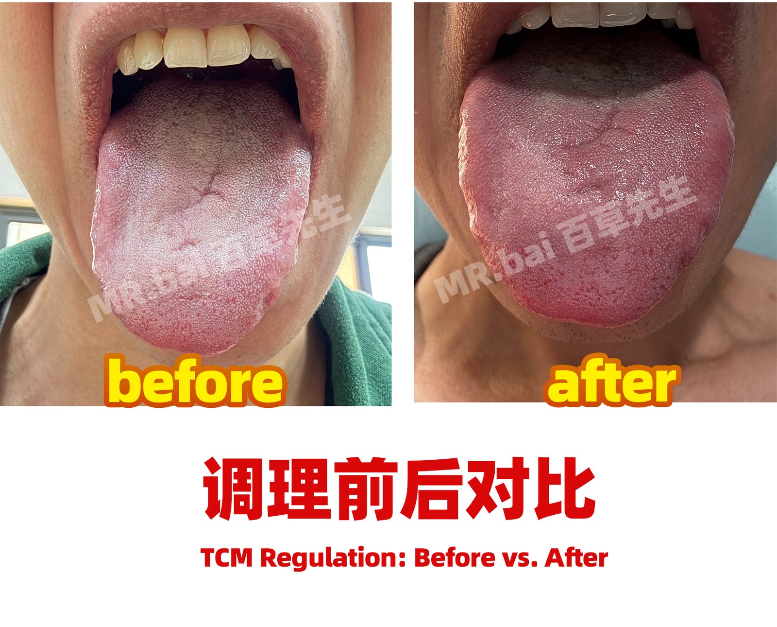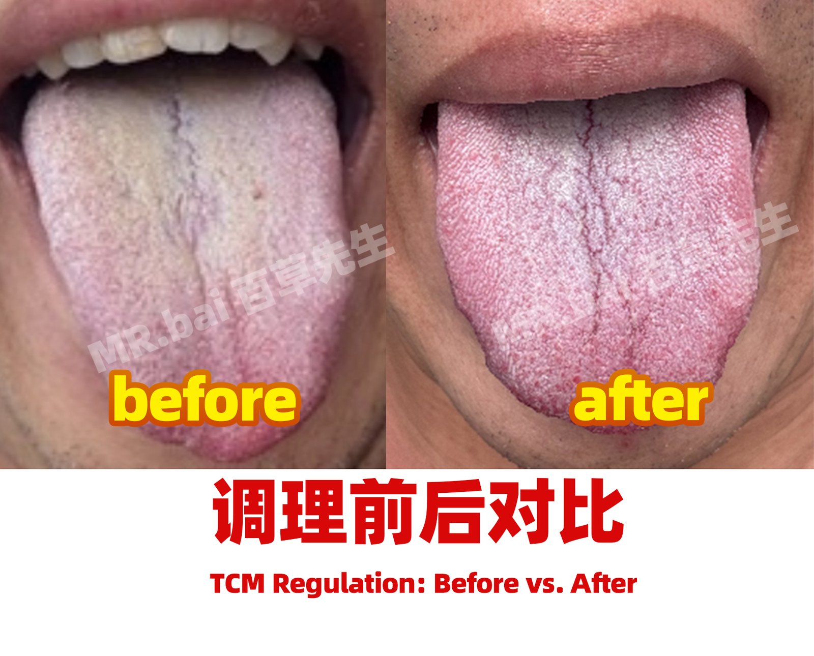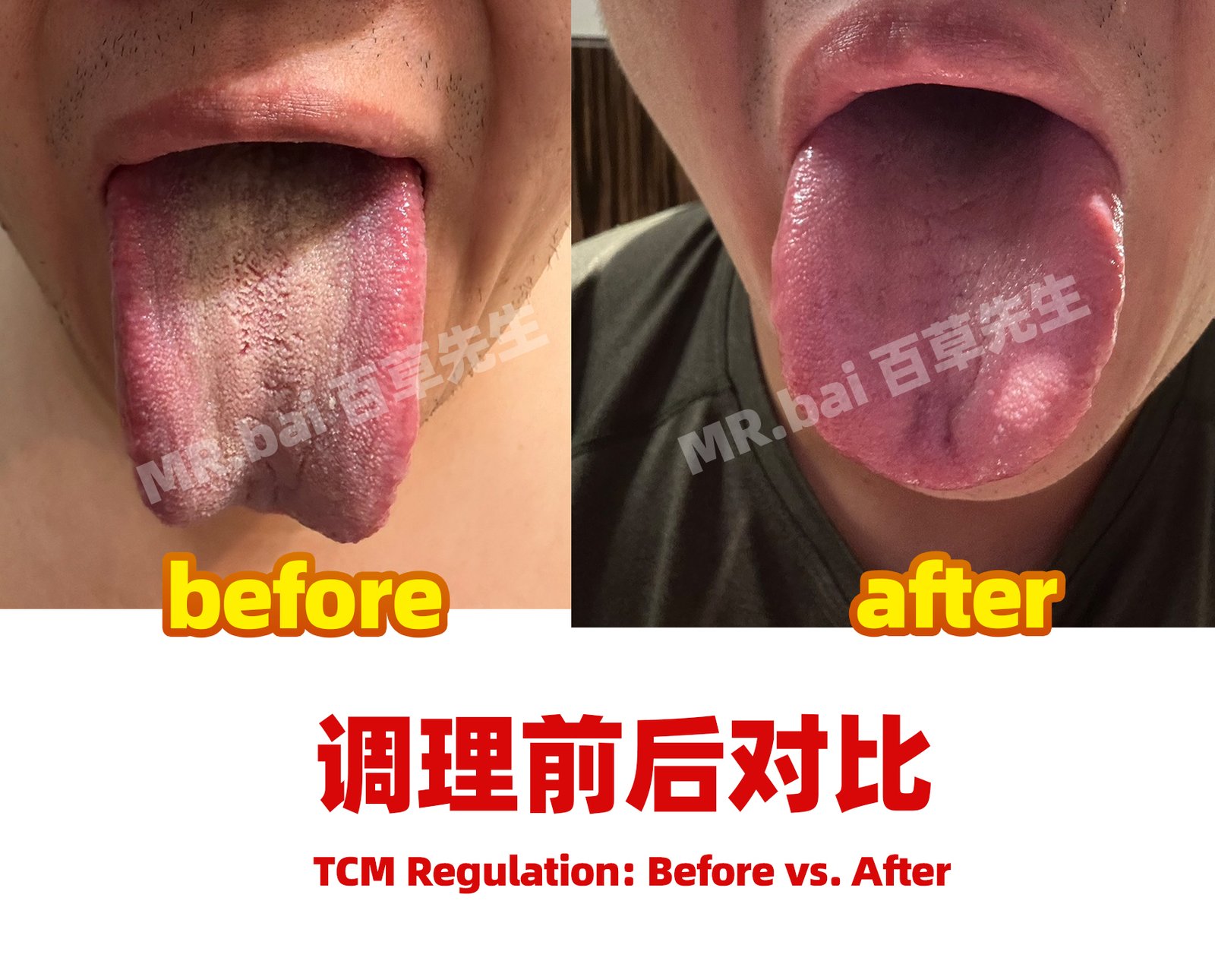 中医舌诊为望诊环节 ,通过观察舌头的状态,还有经过白先生的专业问询,就能快速判断出你五脏六腑的健康情况,经过调理后,人体的升降、五行阴阳平衡后,舌相的变化肉眼可见,以下为客户真实案例。