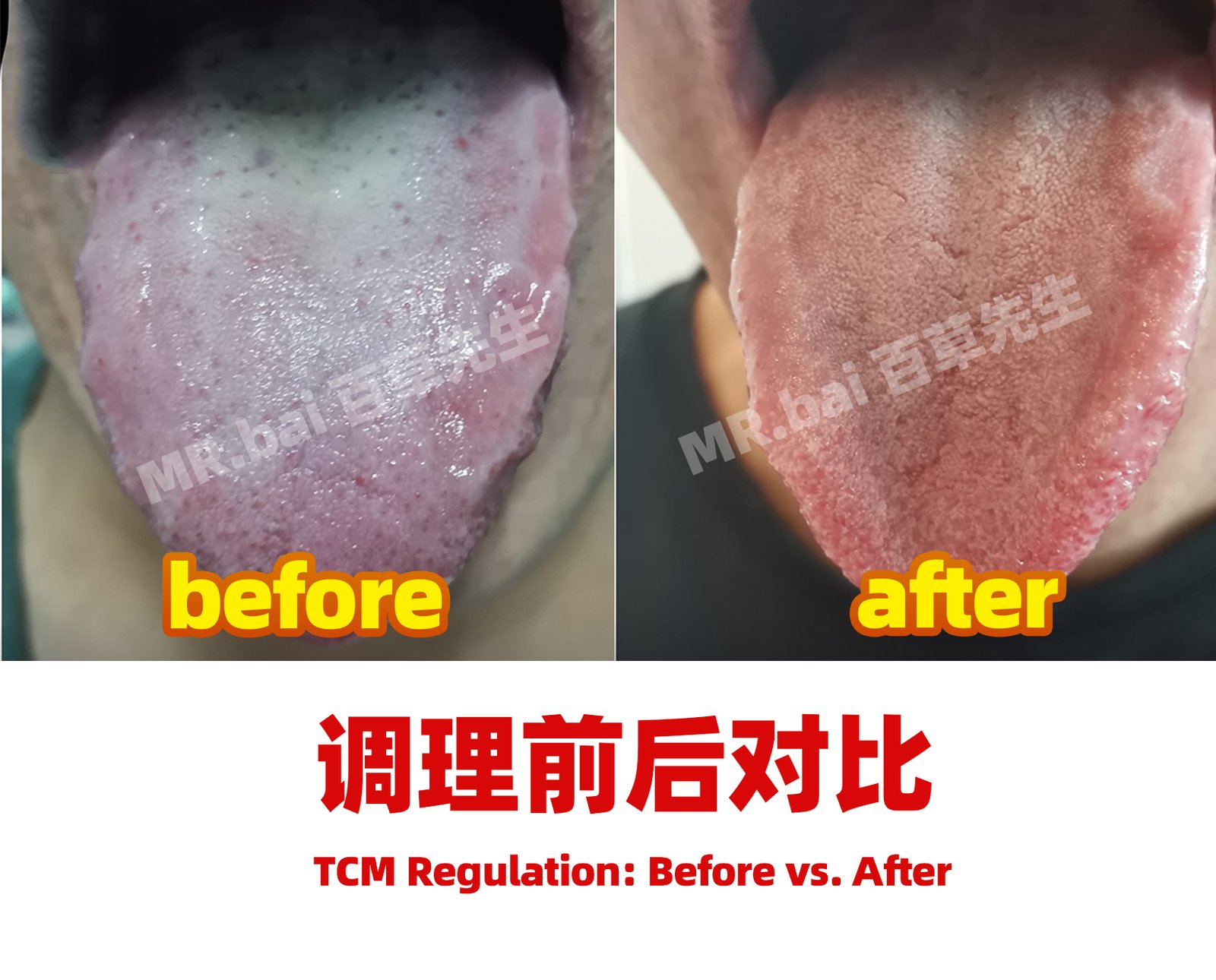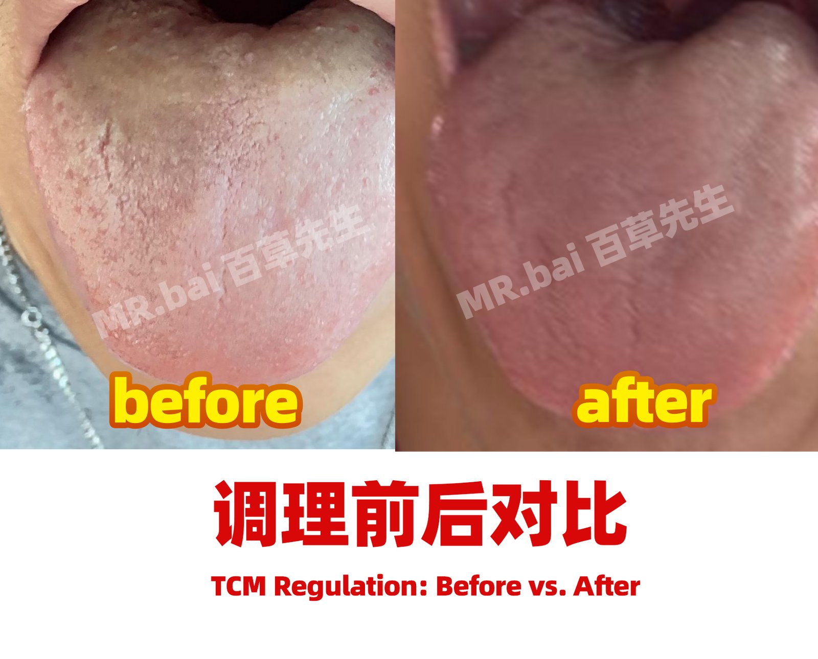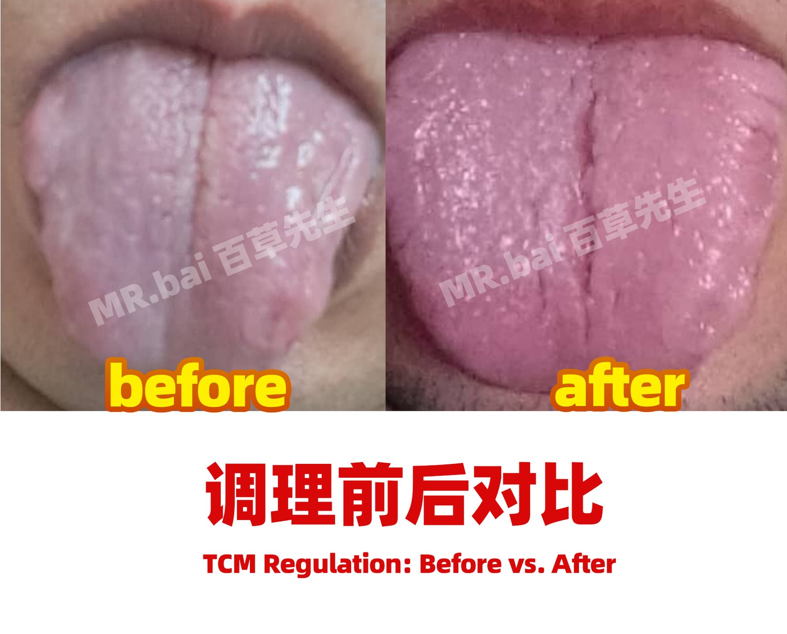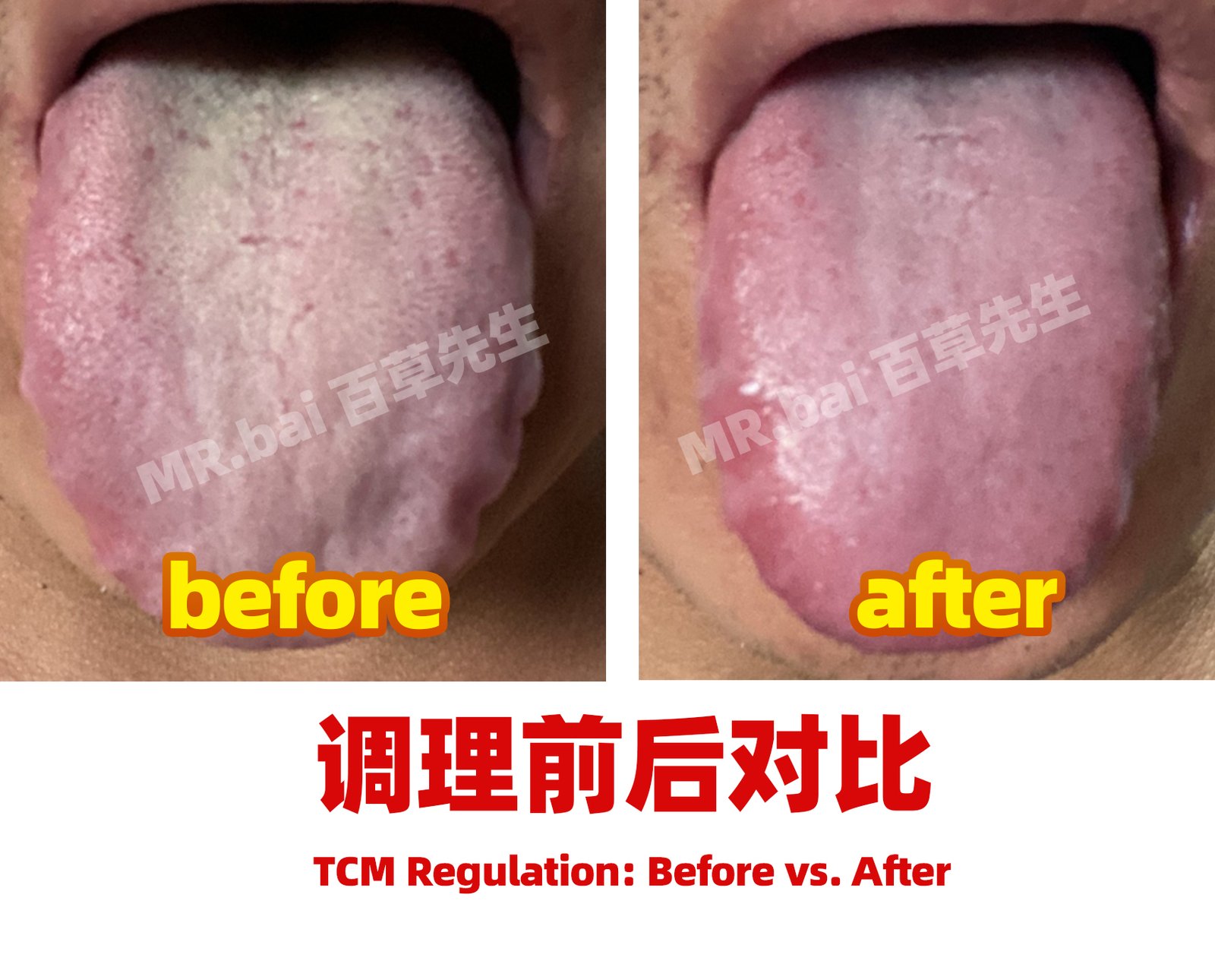 中医舌诊为望诊环节 ,通过观察舌头的状态,还有经过白先生的专业问询,就能快速判断出你五脏六腑的健康情况,经过调理后,人体的升降、五行阴阳平衡后,舌相的变化肉眼可见,以下为客户真实案例。