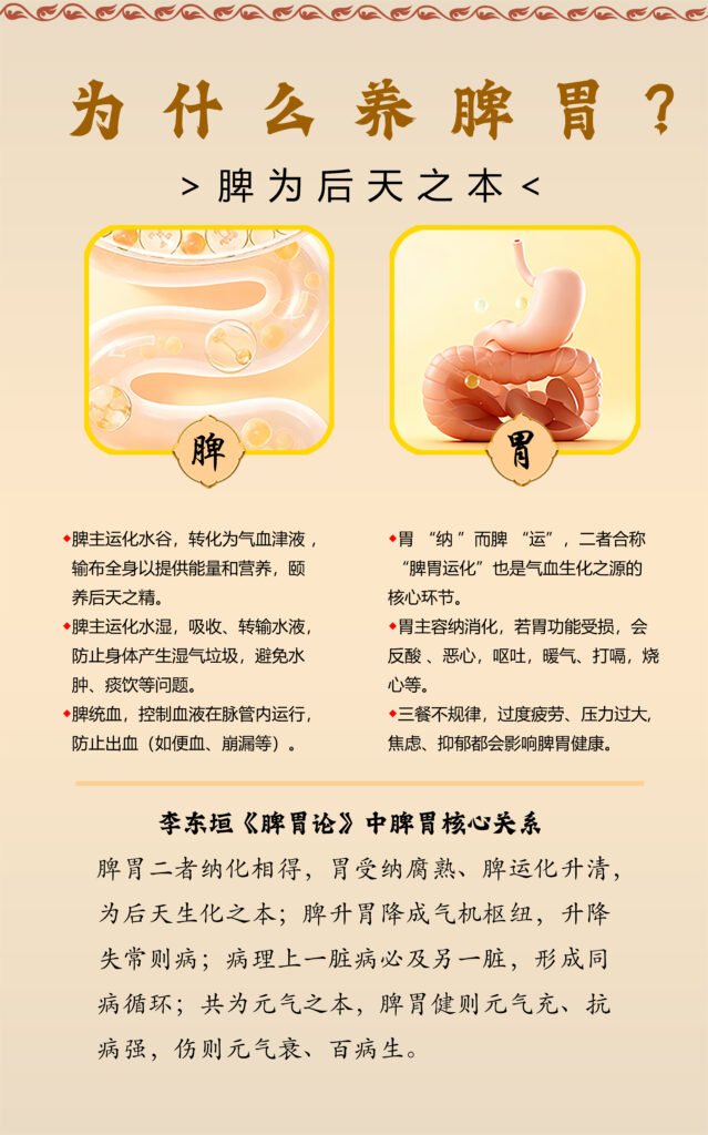 在中医五行体系中,脾属 “土”,是人体气机升降的核心枢纽 —— 脾主 “升清”,将水谷精微向上输布以养脏腑;胃主 “降浊”,把代谢糟粕向下传导以通腑气,脾胃升降相和,才是五行气机循环的根基。